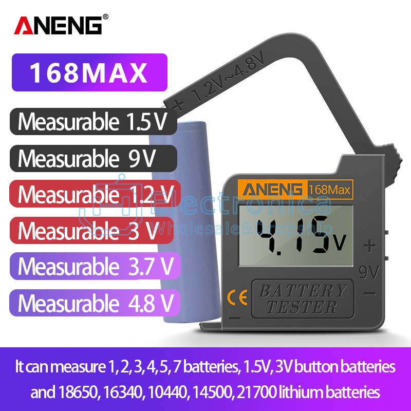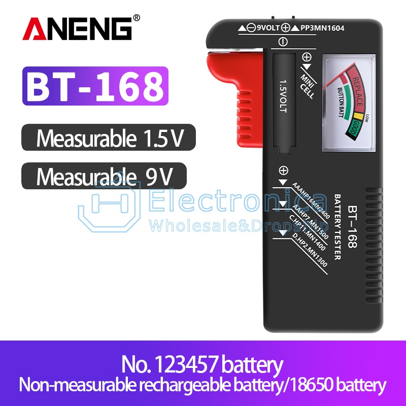 168D (Measurable 1.2/1.5/3/9V, not measurable 18650)